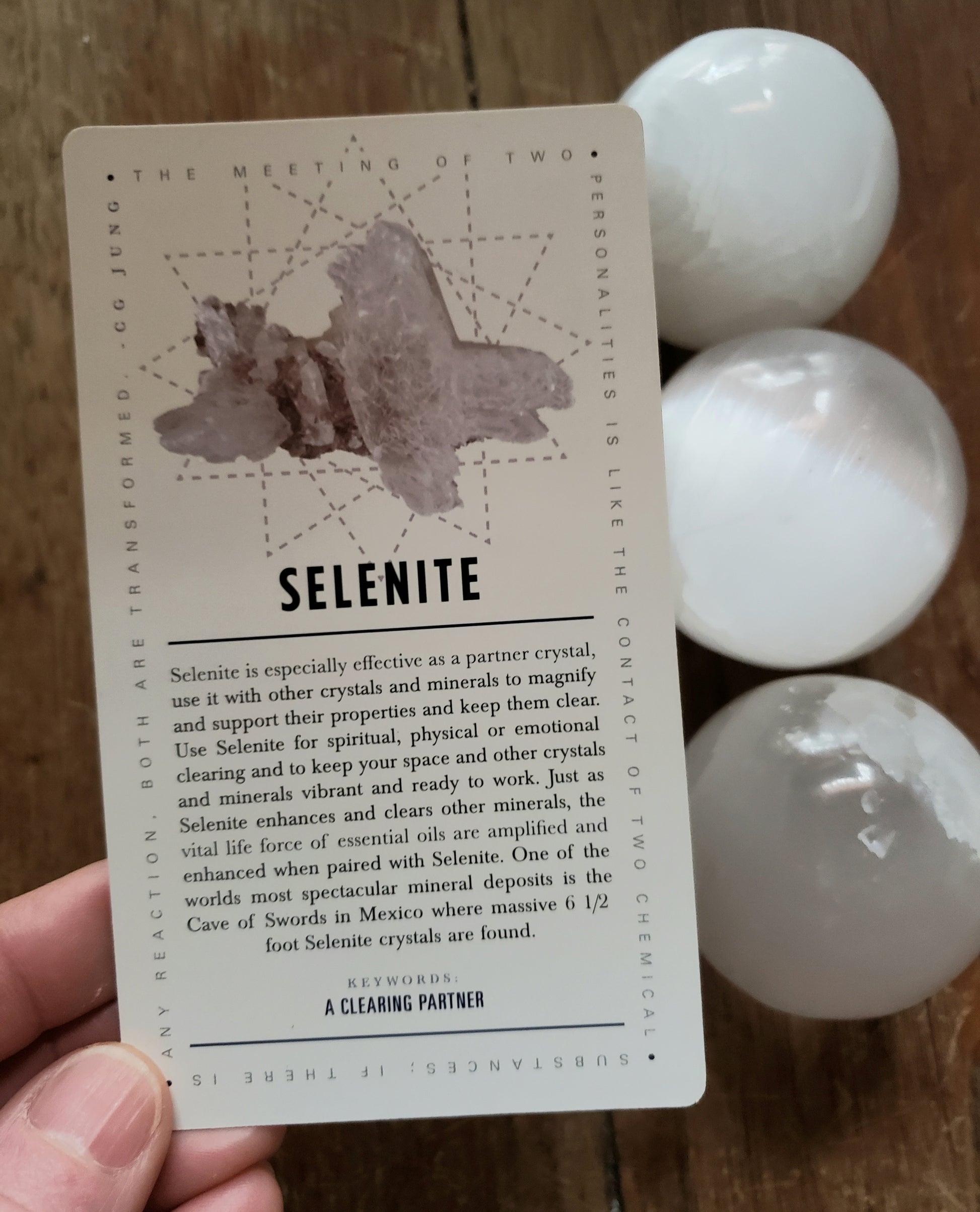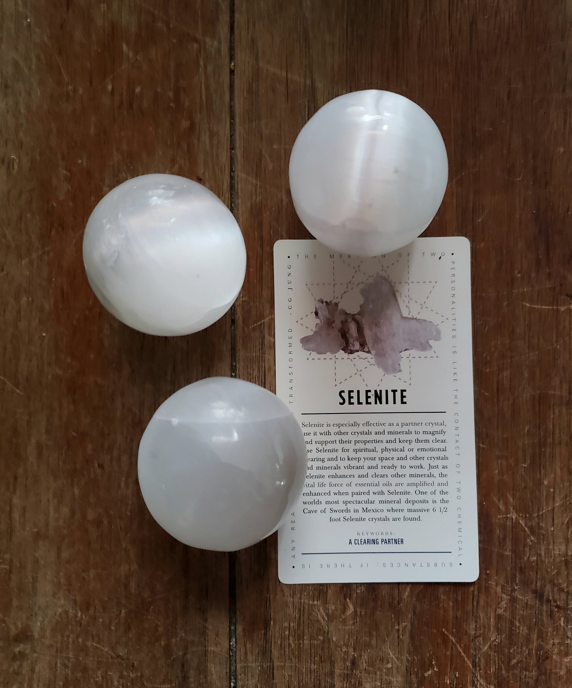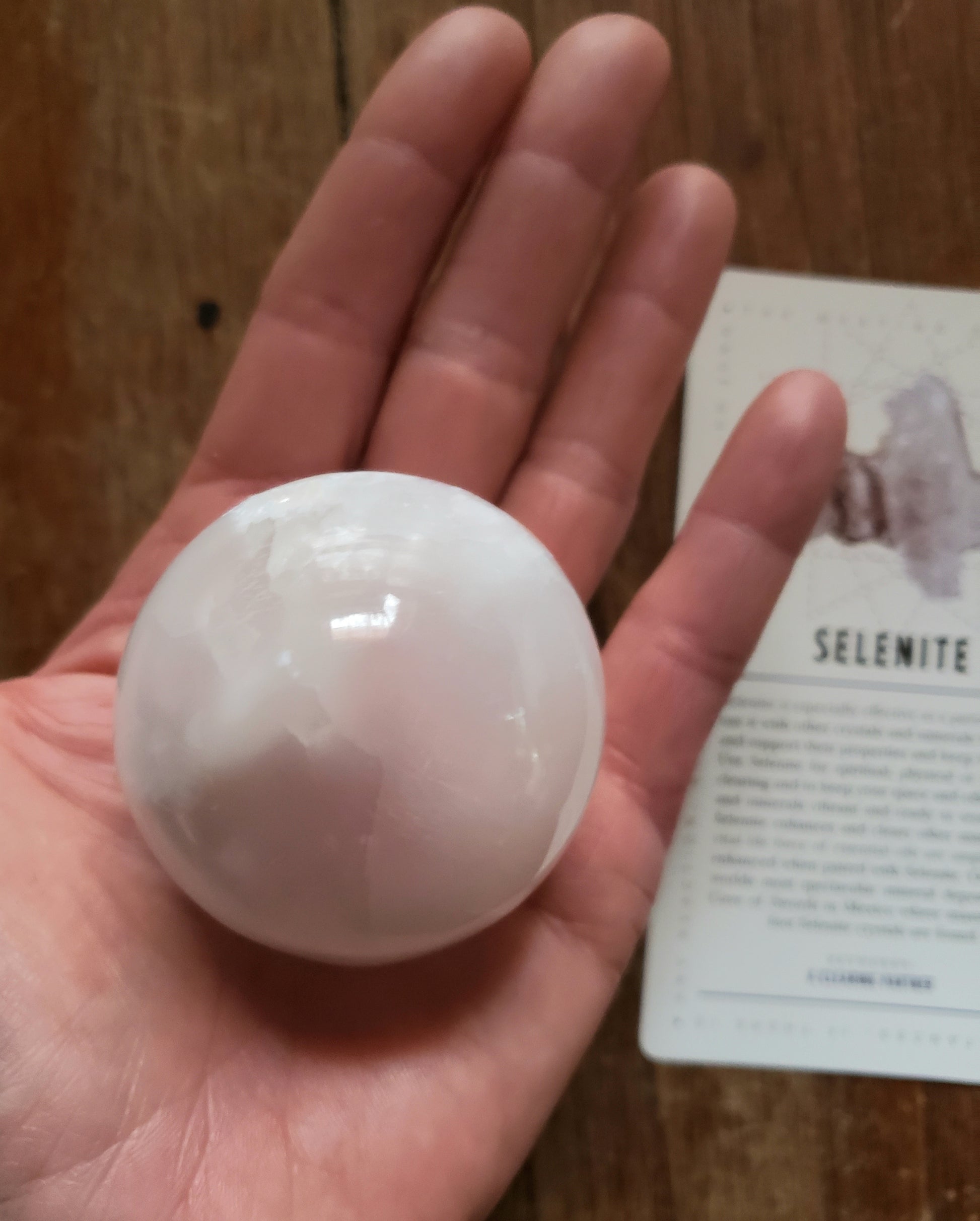 This listing is for a 2-inch diameter selenite sphere and one deck of Lavish Earth Crystal Affirmation Cards.