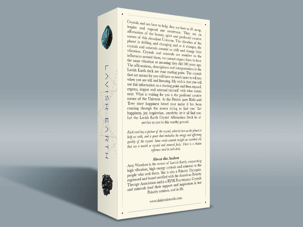 The descriptions about what the crystals are here on the planet to help us with were researched and written by me and some cards contain insight on essential oils that are a match or interesting crystal and mineral facts.