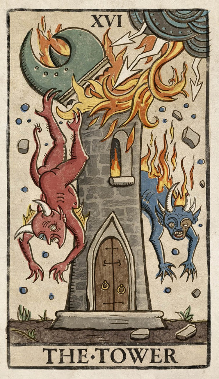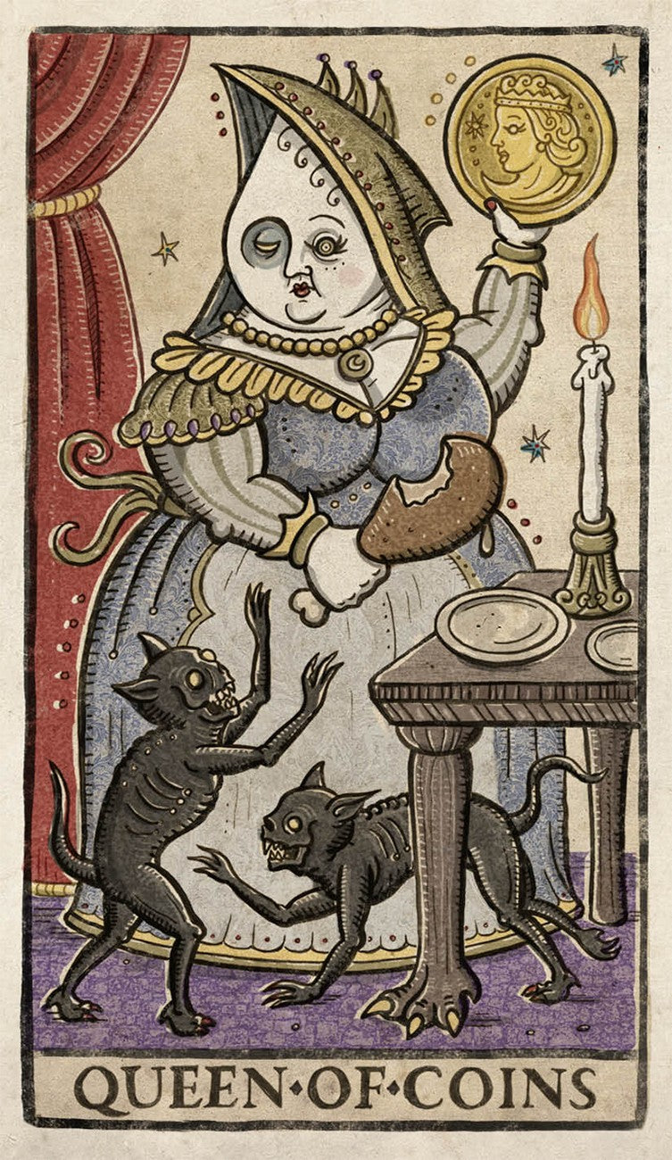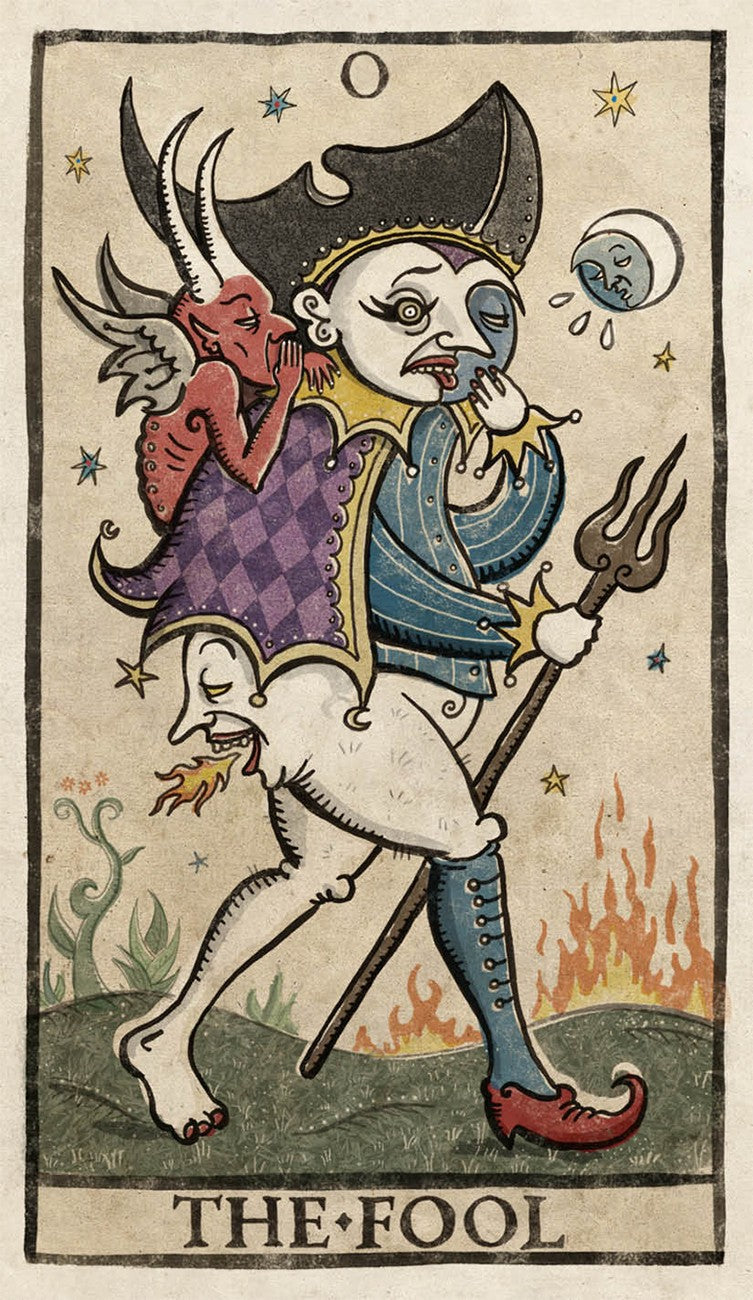 - Classic Style Tarot Deck: Inspired by historic Marseilles style tarot art, follows traditional Rider-Waite format, with uniquely whimsical and satirical interpretations